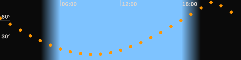 | Höchster Stand (Kulmination) | 21:09 Uhr (h = 87°) |