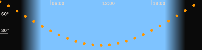 | Höchster Stand (Kulmination) | 23:55 Uhr (h = 87°) |