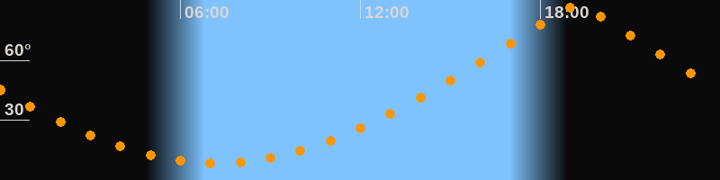 | Höchster Stand (Kulmination) | 19:12 Uhr (h = 87°) |