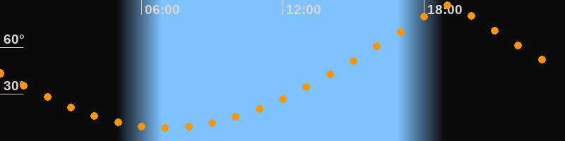 | Höchster Stand (Kulmination) | 19:02 Uhr (h = 87°) |
