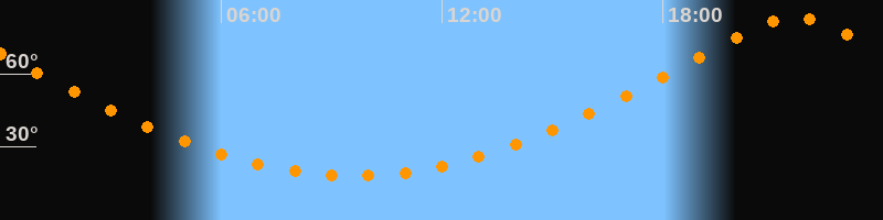 Höchster Stand (Kulmination)21:34 Uhr (h = 83,2°)