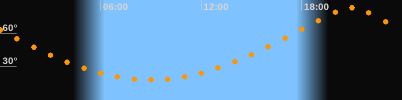 Höchster Stand (Kulmination)20:56 Uhr (h = 83,2°)
