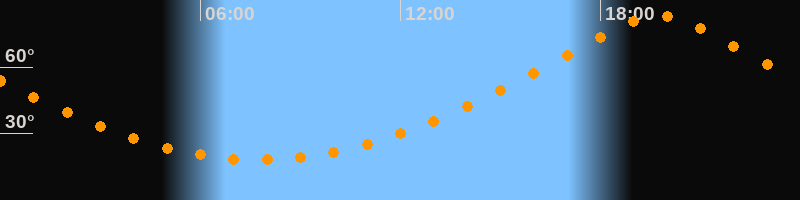 Höchster Stand (Kulmination)19:45 Uhr (h = 83,2°)