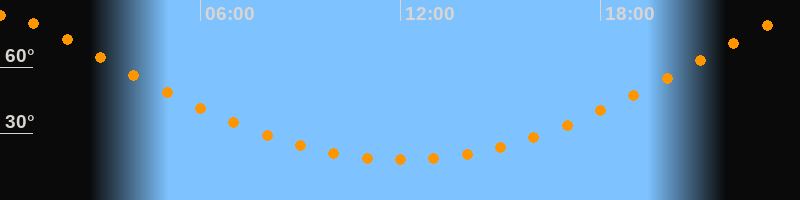 Höchster Stand (Kulmination)00:03 Uhr (h = 83,2°)