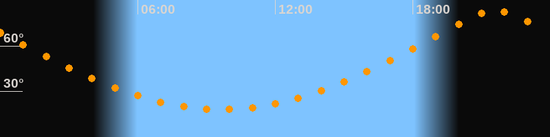 Höchster Stand (Kulmination)21:37 Uhr (h = 83,2°)