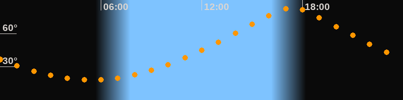 Höchster Stand (Kulmination)17:23 Uhr (h = 83,2°)