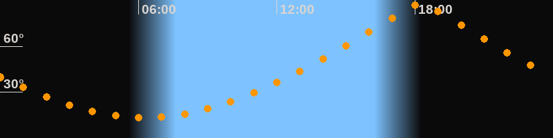 | Höchster Stand (Kulmination) | 18:14 Uhr (h = 87,9°) |