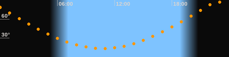 | Höchster Stand (Kulmination) | 22:44 Uhr (h = 87,9°) |