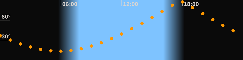 | Höchster Stand (Kulmination) | 17:48 Uhr (h = 87,9°) |
