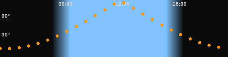 | Höchster Stand (Kulmination) | 12:38 Uhr (h = 87,9°) |