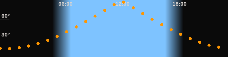 | Höchster Stand (Kulmination) | 12:43 Uhr (h = 87,9°) |