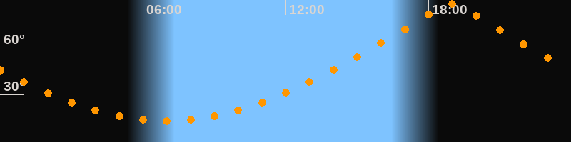 | Höchster Stand (Kulmination) | 18:57 Uhr (h = 87,9°) |