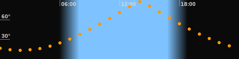 | Höchster Stand (Kulmination) | 14:02 Uhr (h = 87,9°) |