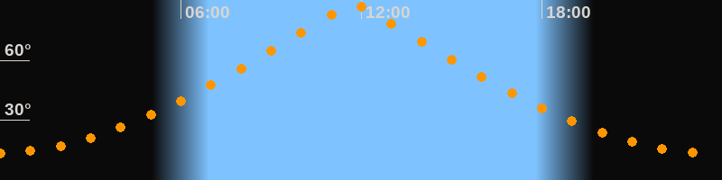 | Höchster Stand (Kulmination) | 11:45 Uhr (h = 87,9°) |