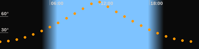 | Höchster Stand (Kulmination) | 11:41 Uhr (h = 87,9°) |