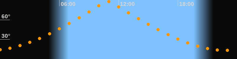 | Höchster Stand (Kulmination) | 10:54 Uhr (h = 87,9°) |