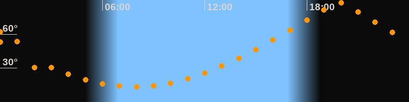 | Höchster Stand (Kulmination) | 19:53 Uhr (h = 87,9°) |