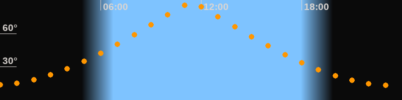| Höchster Stand (Kulmination) | 11:24 Uhr (h = 87,9°) |