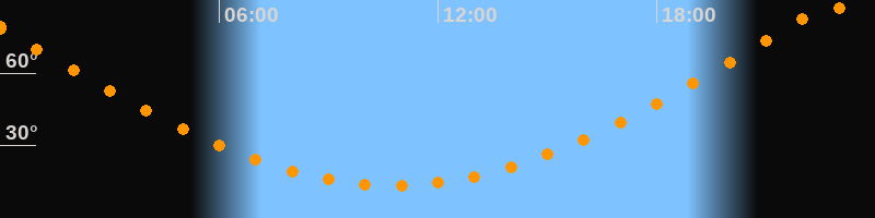 | Höchster Stand (Kulmination) | 22:46 Uhr (h = 87,9°) |