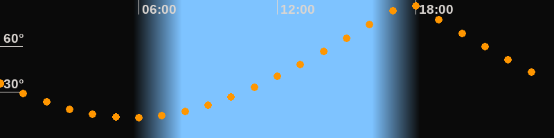 | Höchster Stand (Kulmination) | 17:40 Uhr (h = 87,9°) |