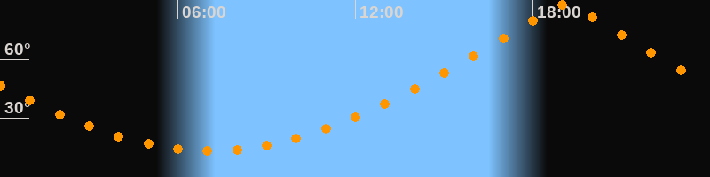 | Höchster Stand (Kulmination) | 19:05 Uhr (h = 87,9°) |