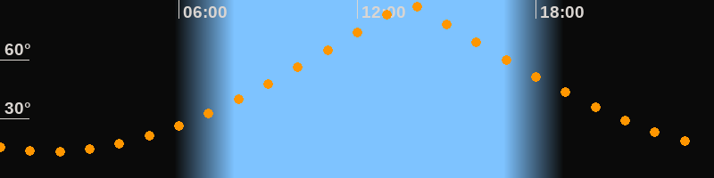 | Höchster Stand (Kulmination) | 13:43 Uhr (h = 87,9°) |