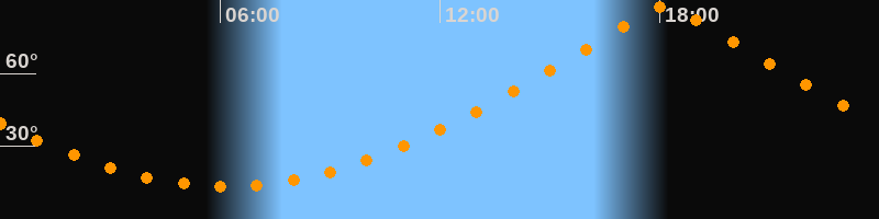| Höchster Stand (Kulmination) | 18:09 Uhr (h = 87,9°) |