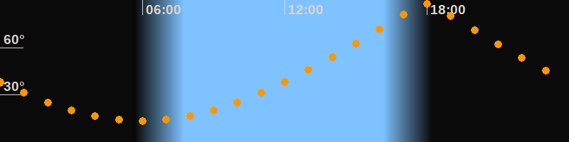 | Höchster Stand (Kulmination) | 17:57 Uhr (h = 87,9°) |