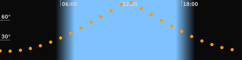 | Höchster Stand (Kulmination) | 12:40 Uhr (h = 87,9°) |