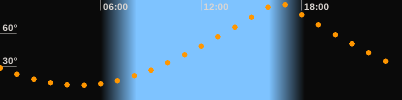 | Höchster Stand (Kulmination) | 16:37 Uhr (h = 87,9°) |