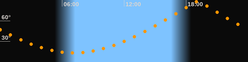 | Höchster Stand (Kulmination) | 19:07 Uhr (h = 87,9°) |