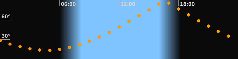 | Höchster Stand (Kulmination) | 16:34 Uhr (h = 87,9°) |
