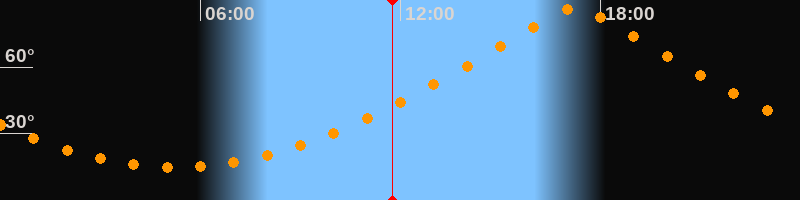 | Höchster Stand (Kulmination) | 17:15 Uhr (h = 86,7°) |