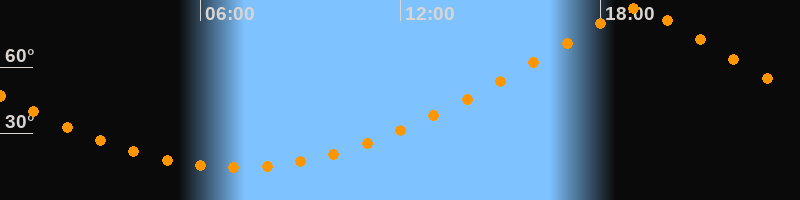 | Höchster Stand (Kulmination) | 19:05 Uhr (h = 86,7°) |