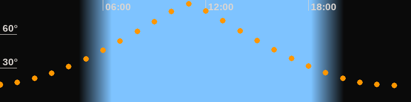 | Höchster Stand (Kulmination) | 11:01 Uhr (h = 86,7°) |