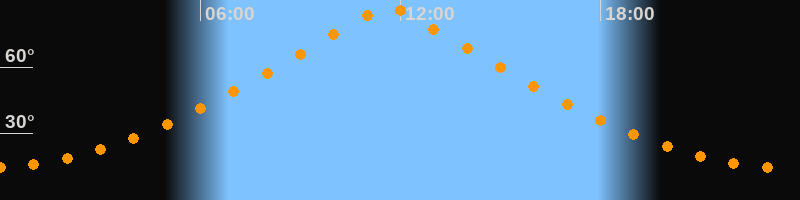 | Höchster Stand (Kulmination) | 11:38 Uhr (h = 86,7°) |