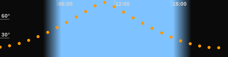 | Höchster Stand (Kulmination) | 10:55 Uhr (h = 86,7°) |