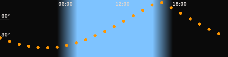 | Höchster Stand (Kulmination) | 16:43 Uhr (h = 86,7°) |