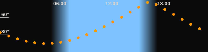 | Höchster Stand (Kulmination) | 17:16 Uhr (h = 86,7°) |