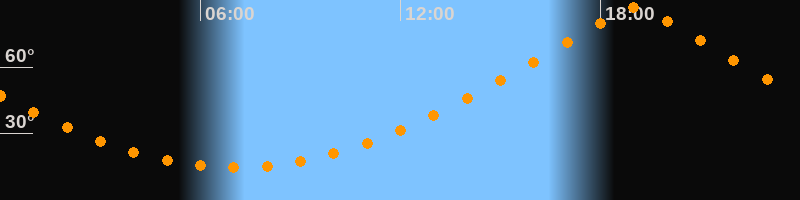 | Höchster Stand (Kulmination) | 19:03 Uhr (h = 86,7°) |