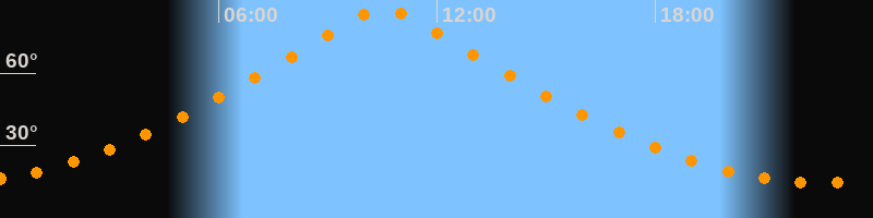 | Höchster Stand (Kulmination) | 10:32 Uhr (h = 86,7°) |