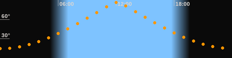 | Höchster Stand (Kulmination) | 12:04 Uhr (h = 86,7°) |