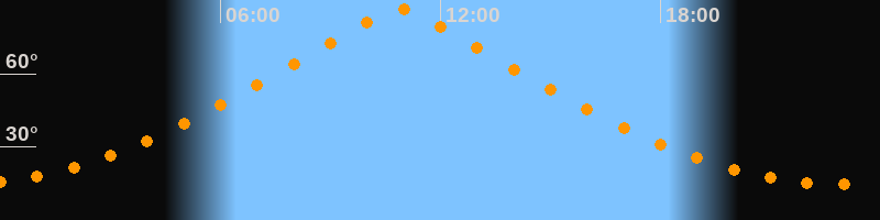 | Höchster Stand (Kulmination) | 10:53 Uhr (h = 86,7°) |