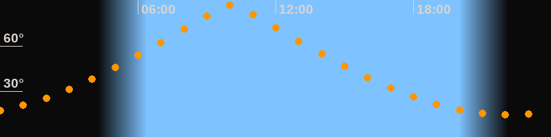 | Höchster Stand (Kulmination) | 10:03 Uhr (h = 86,7°) |
