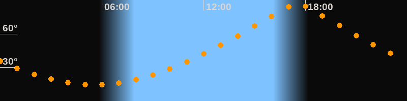 | Höchster Stand (Kulmination) | 17:31 Uhr (h = 86,7°) |