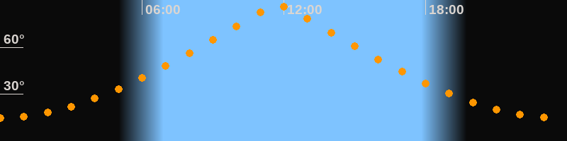 | Höchster Stand (Kulmination) | 11:46 Uhr (h = 86,7°) |