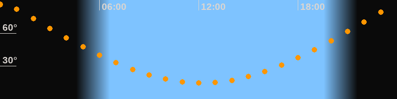 | Höchster Stand (Kulmination) | 00:08 Uhr (h = 86,7°) |