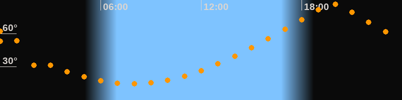 | Höchster Stand (Kulmination) | 19:52 Uhr (h = 86,7°) |