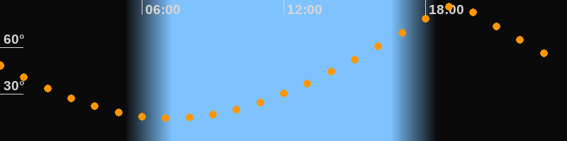 | Höchster Stand (Kulmination) | 19:13 Uhr (h = 86,7°) |