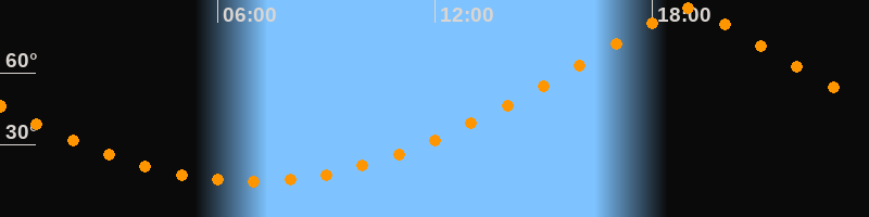 | Höchster Stand (Kulmination) | 18:57 Uhr (h = 86,7°) |